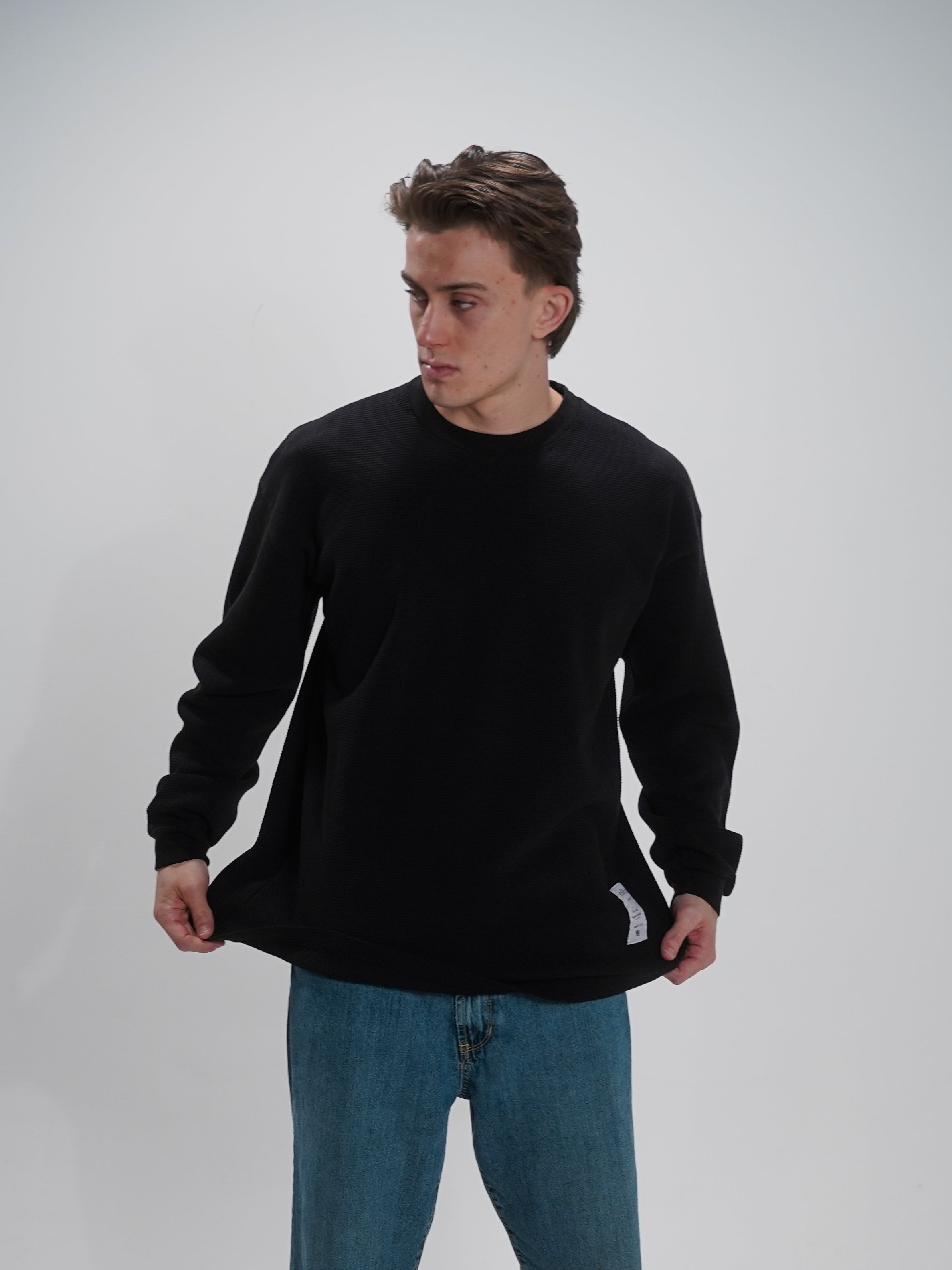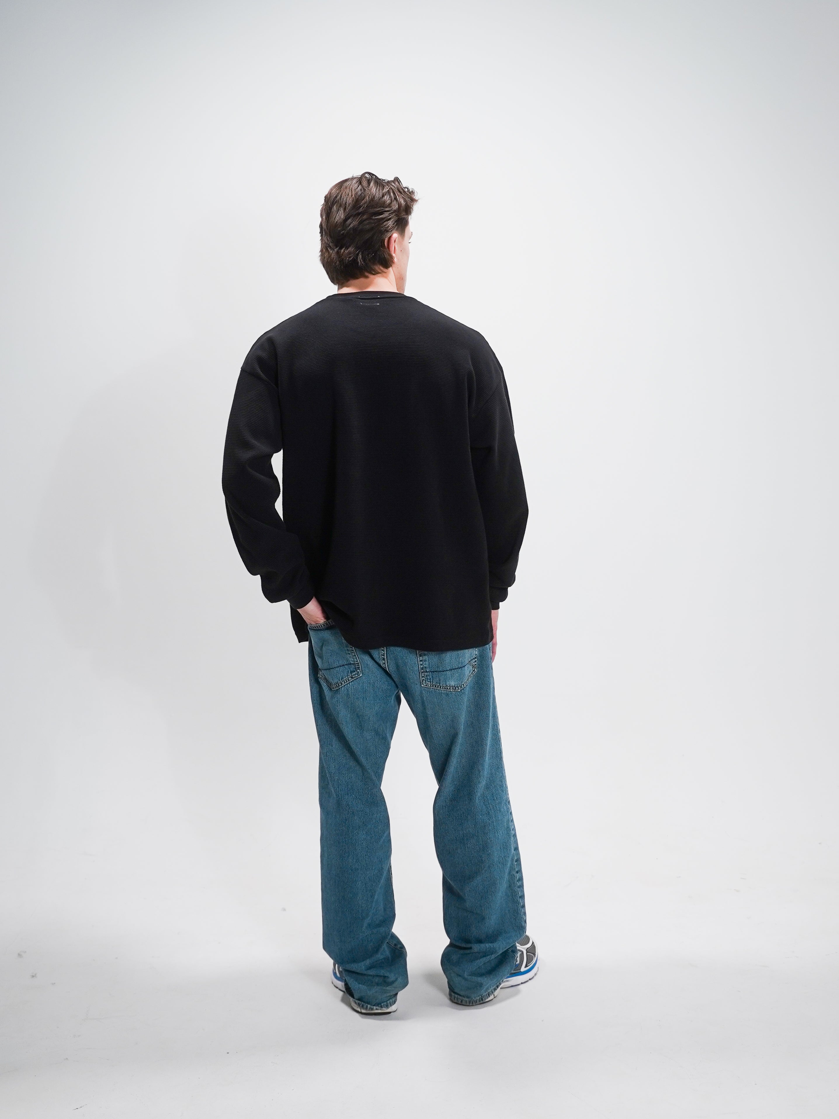 The perfect waffle knit long sleeve. Wears like a shirt, with the thickness almost of a sweater. Loose, billowy, unisex fit. Designed to be worn every day. Made in U.S.A., shipped from Chicago.