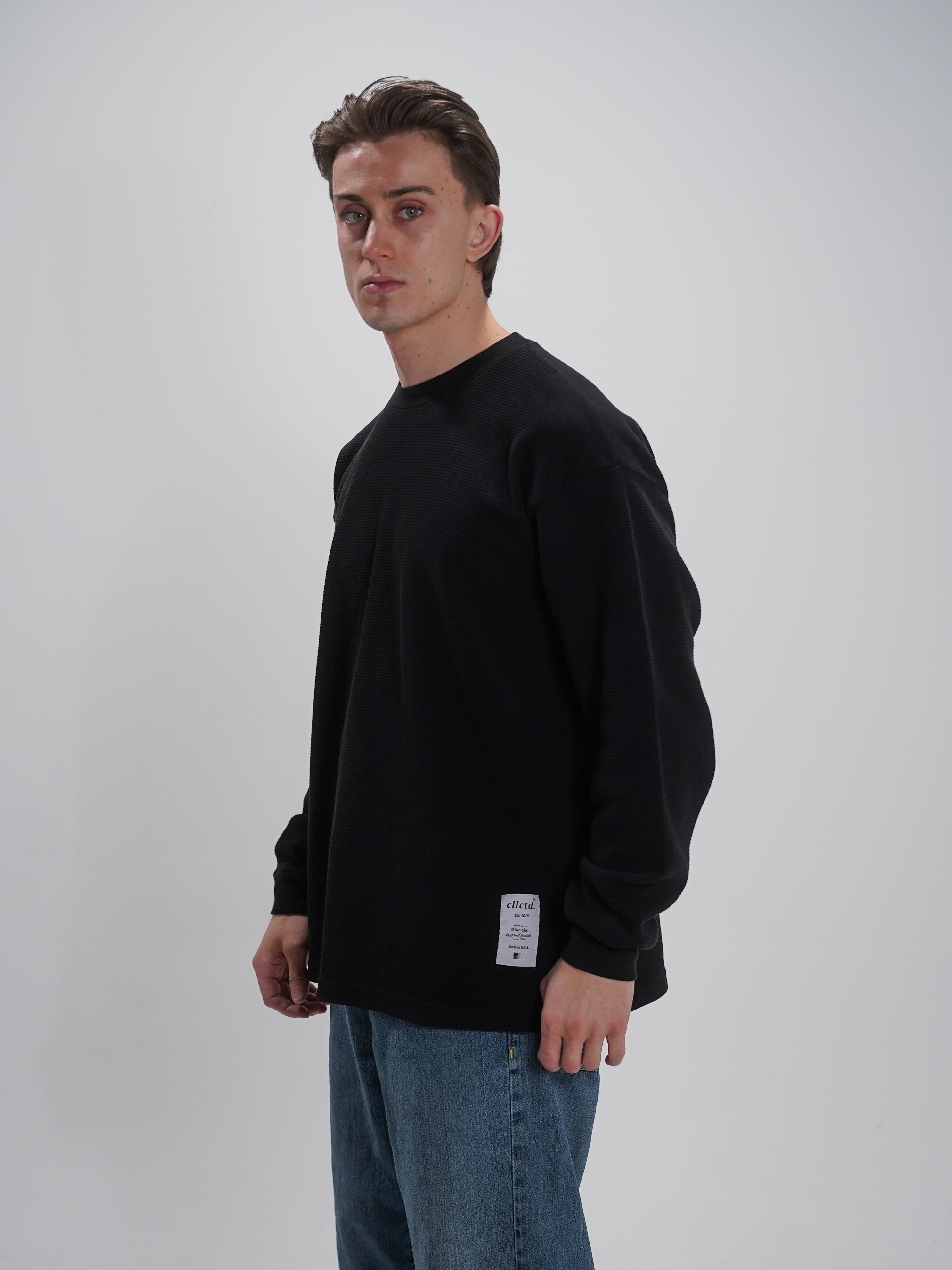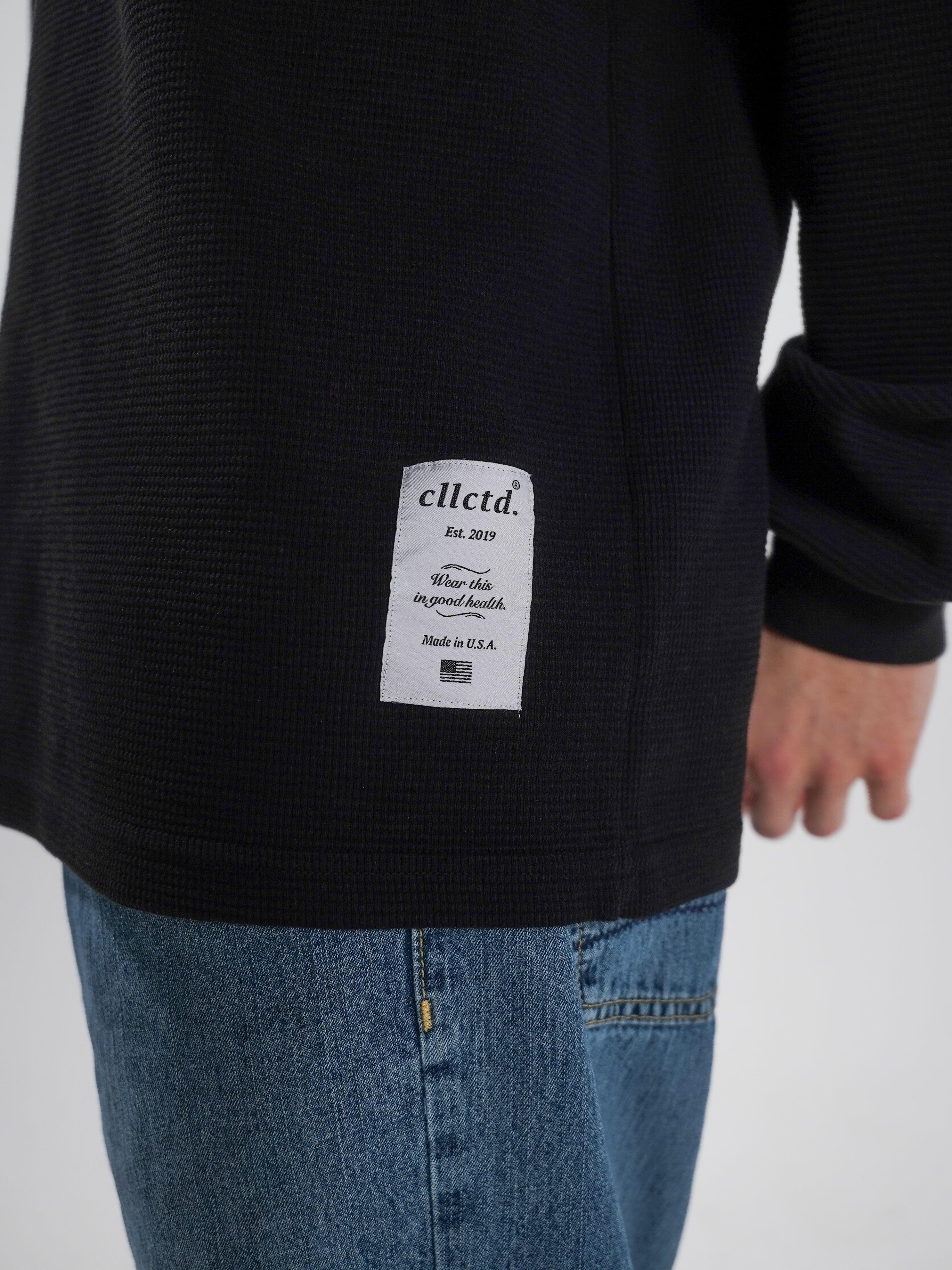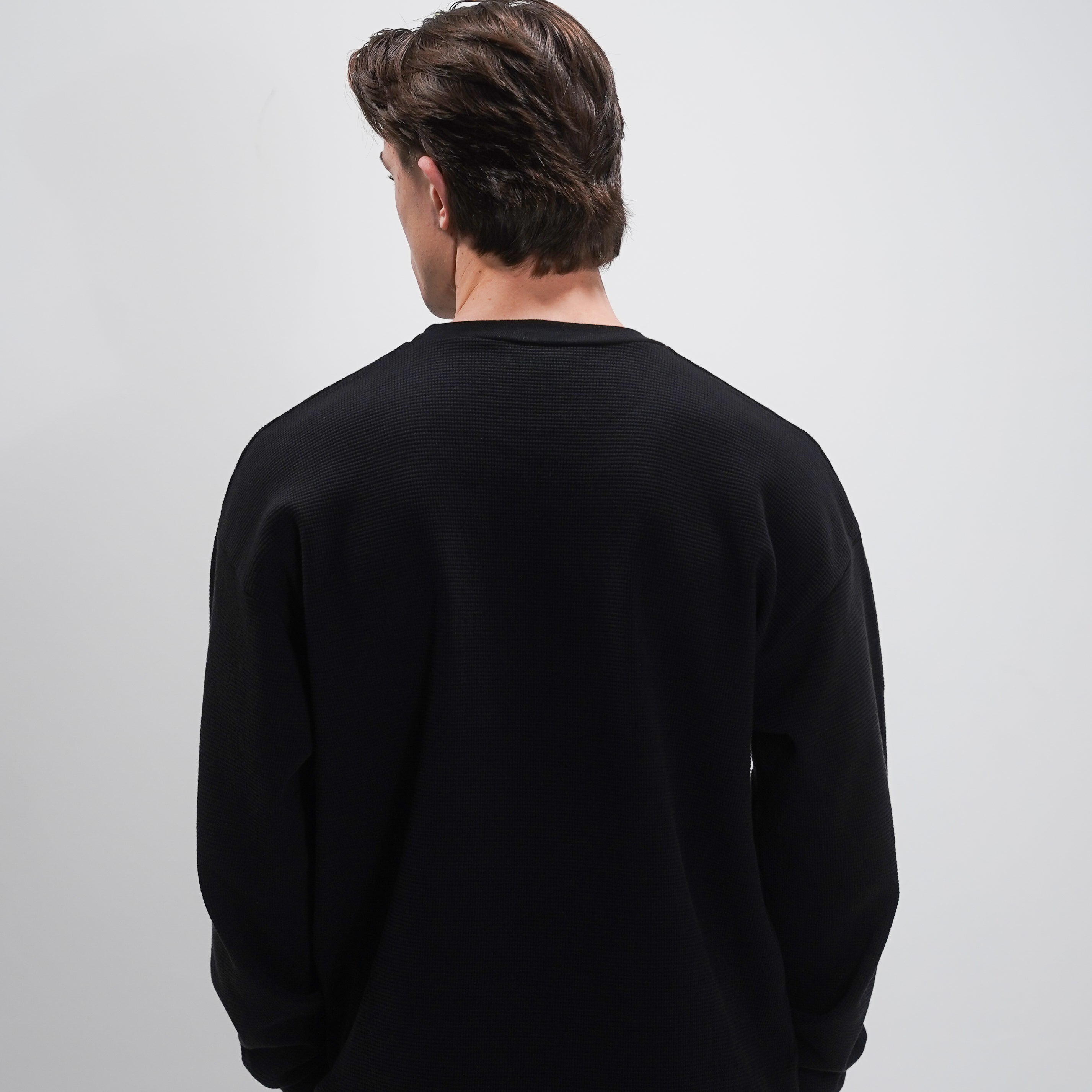 Waffle Knit Long Sleeve Thermal - Jet Black