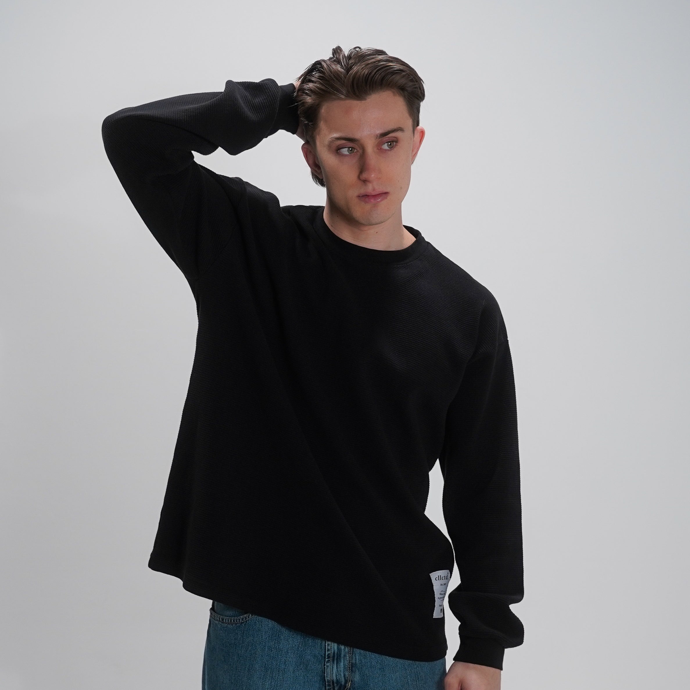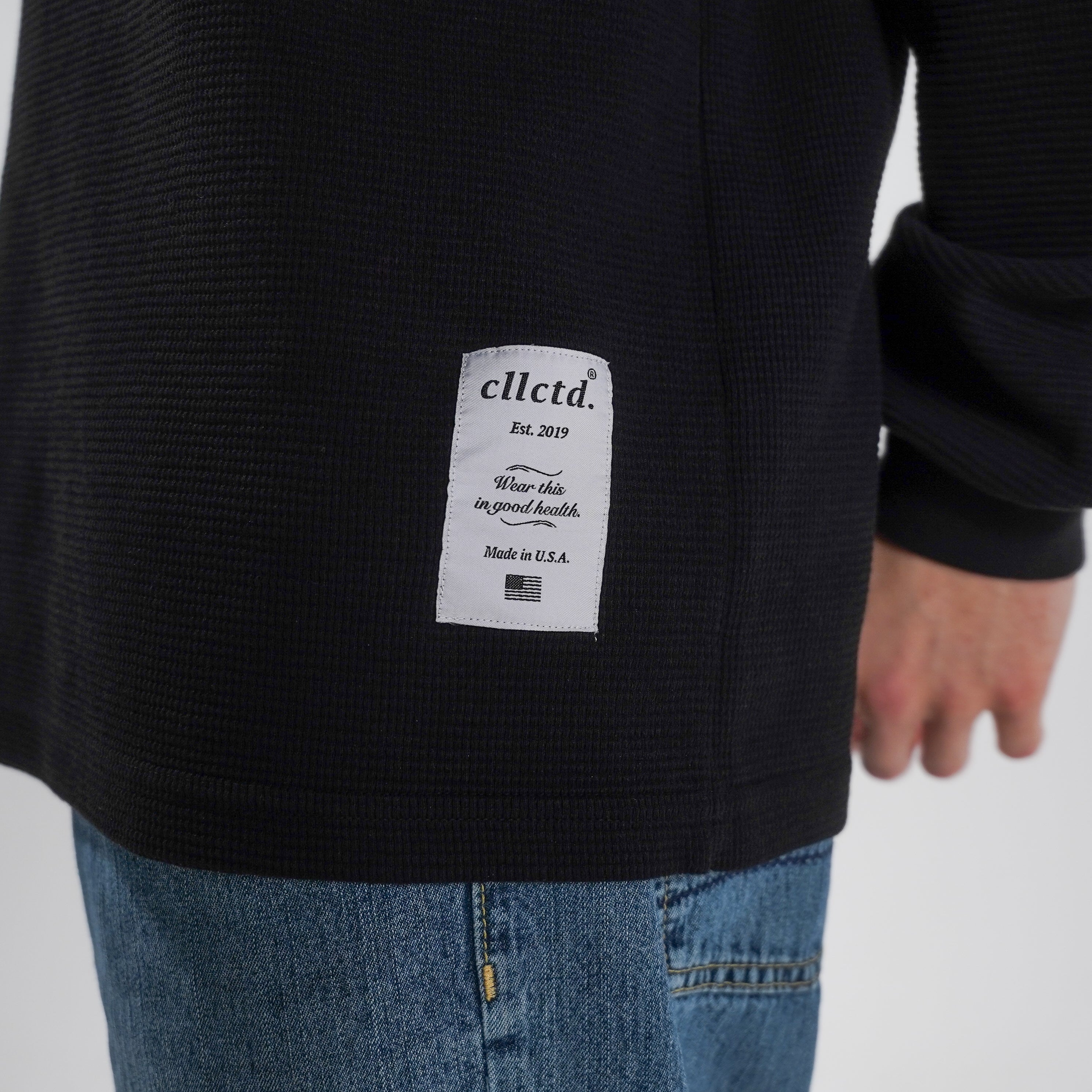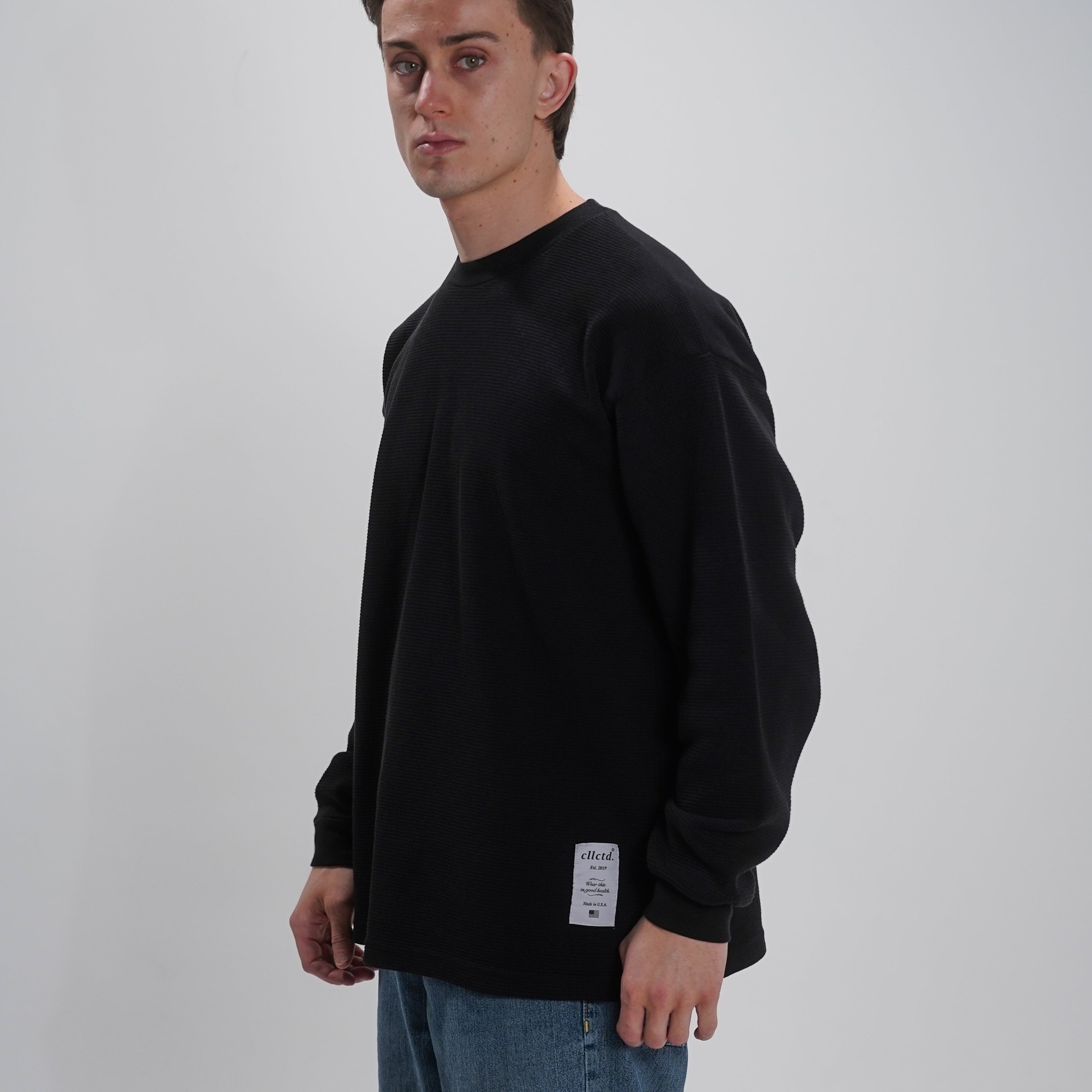 Waffle Knit Long Sleeve Thermal - Jet Black