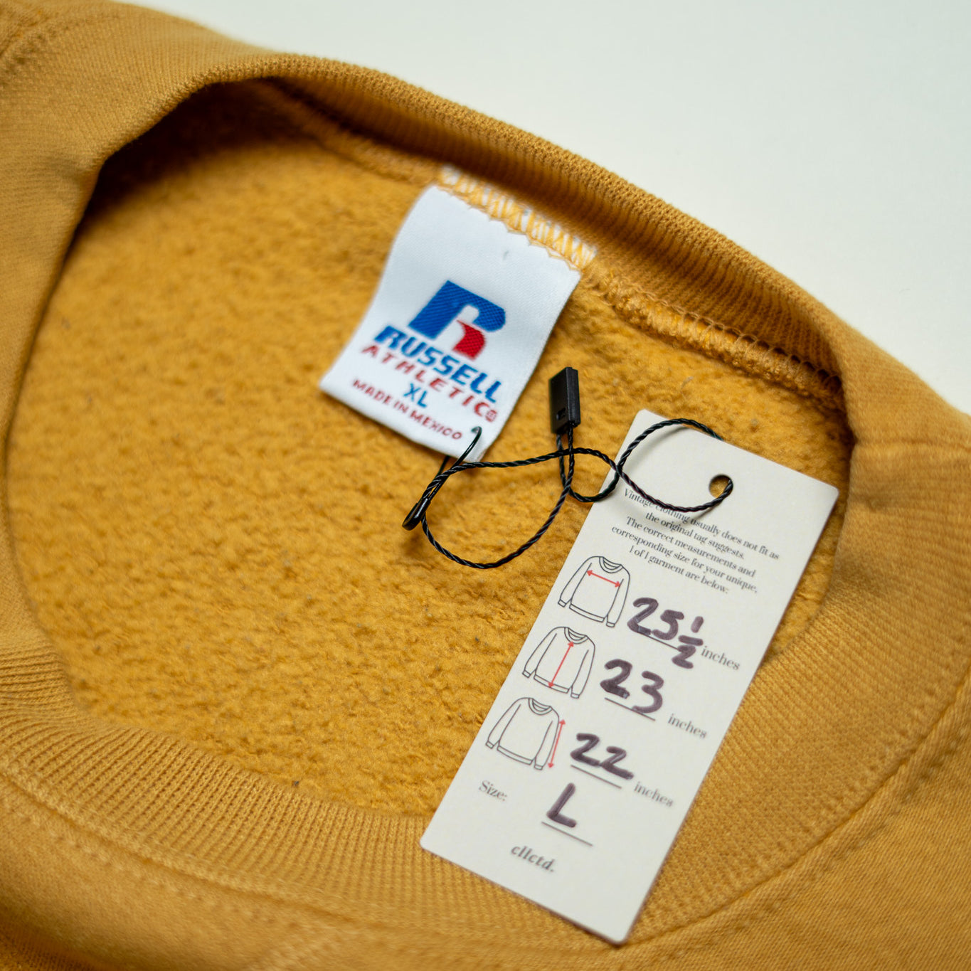 Original garment tag left to maintain respect to the garment.