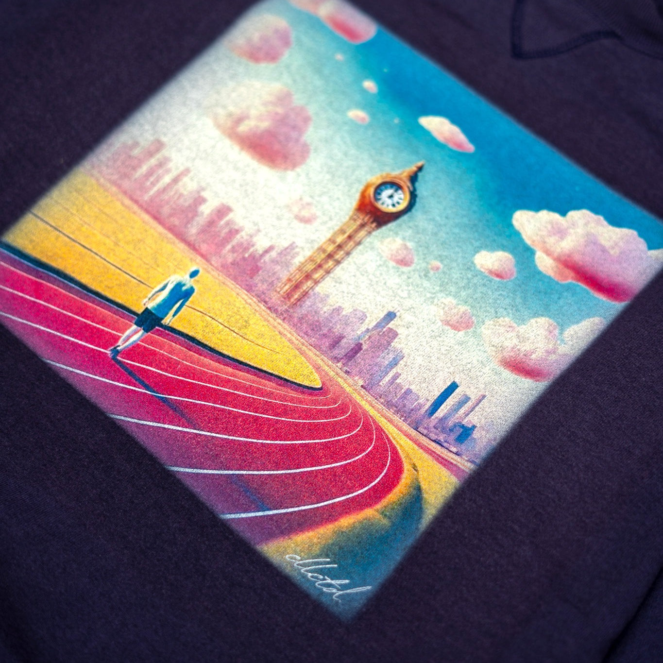 Original ‘Time Waits For No One’ artwork Direct To Garment Printed on the center-front of the garment