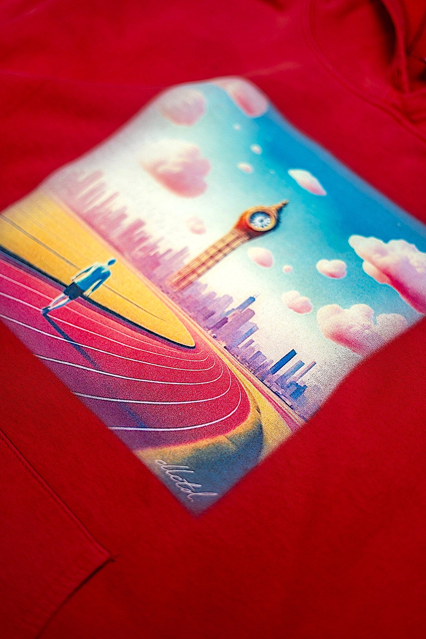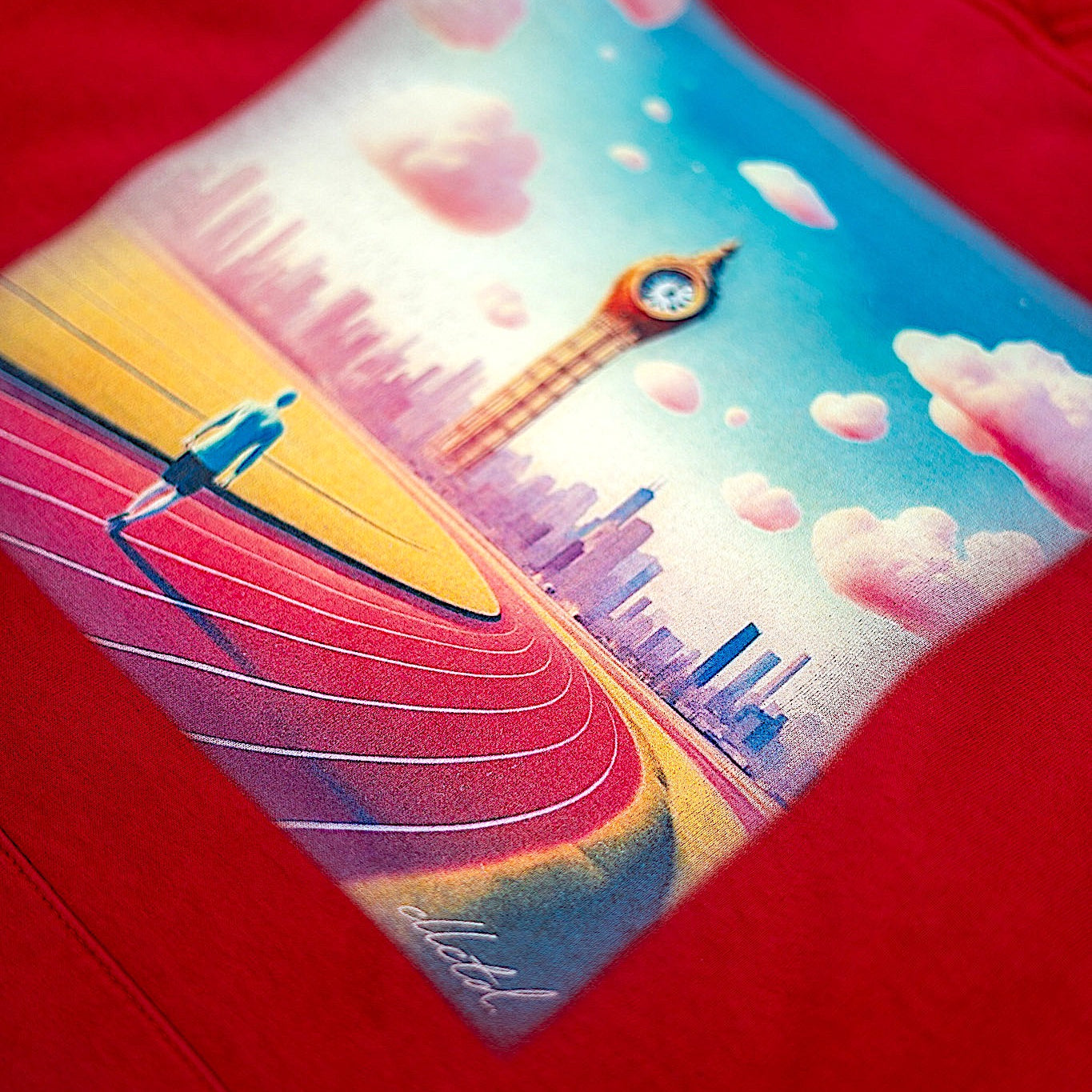 Original ‘Time Waits For No One’ artwork Direct To Garment Printed on the center-front of the garment