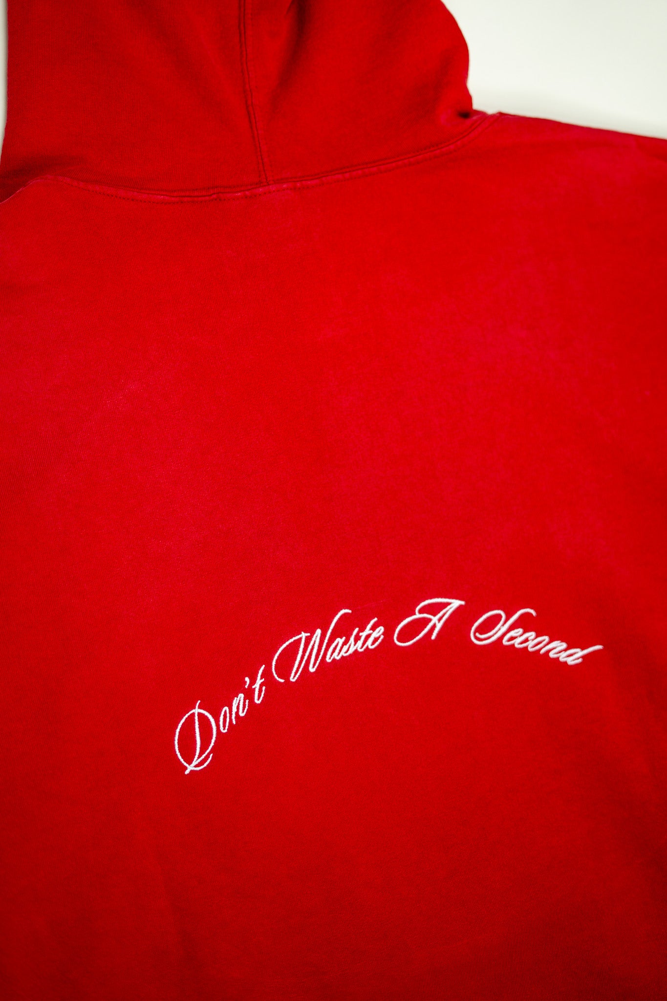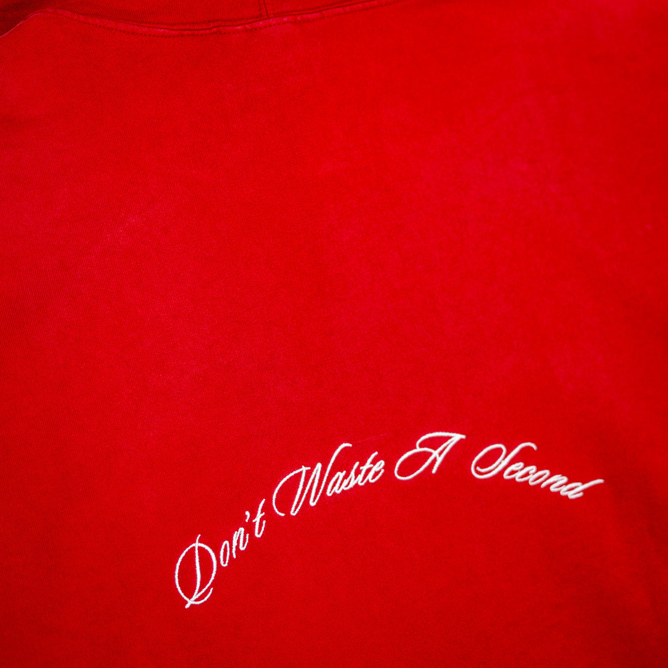 ‘Don’t Waste A Second’ embroidered to the mid-center back.