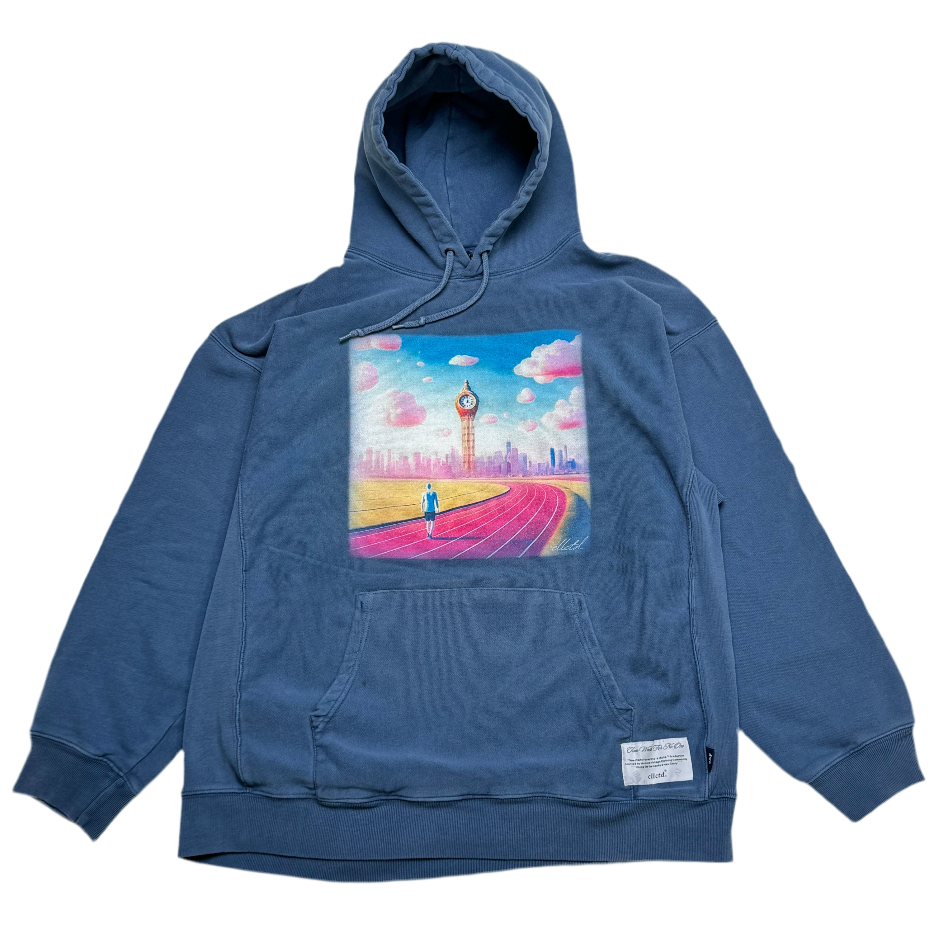 Original ‘Time Waits For No One’ artwork Direct To Garment Printed on the center-front of the garment
