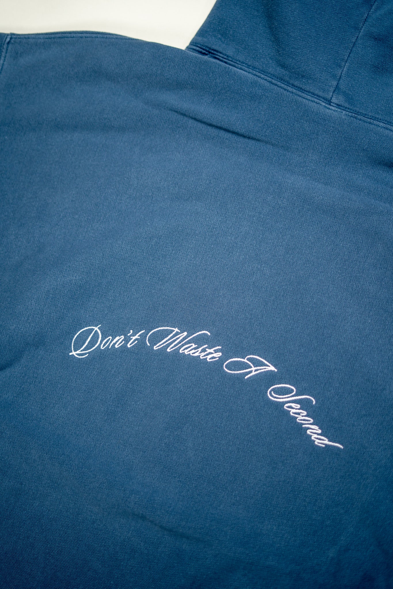 ‘Don’t Waste A Second’ embroidered to the mid-center back.