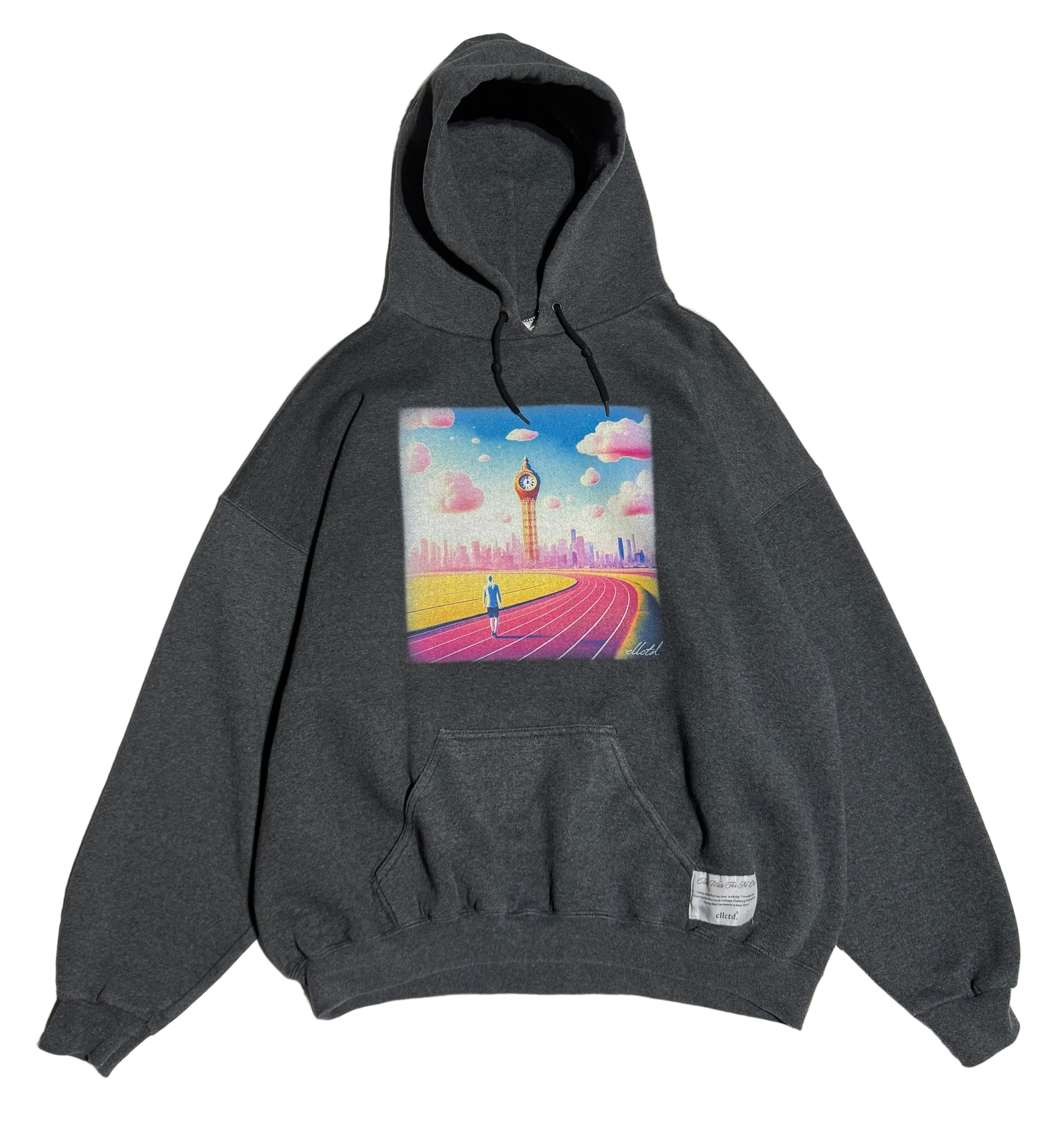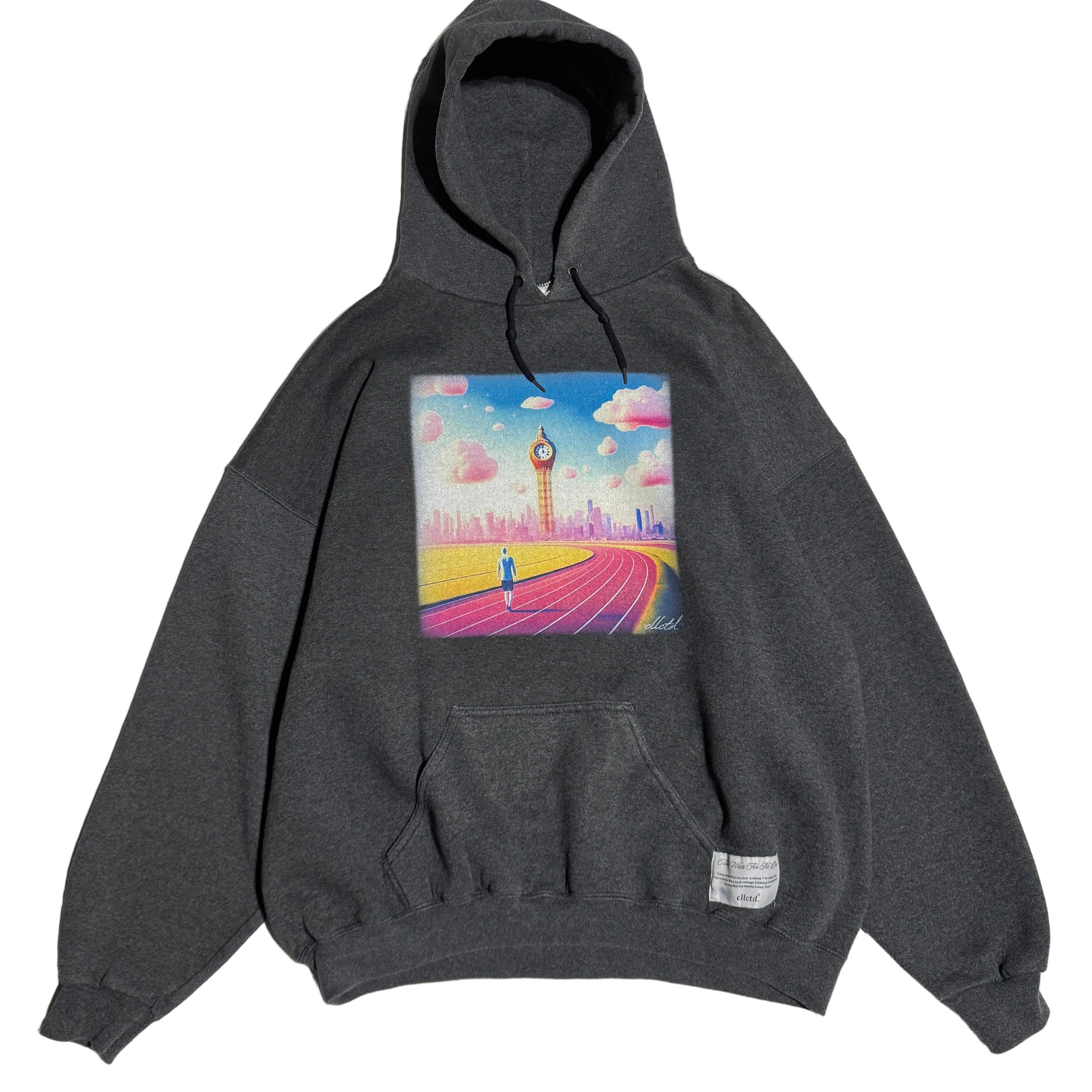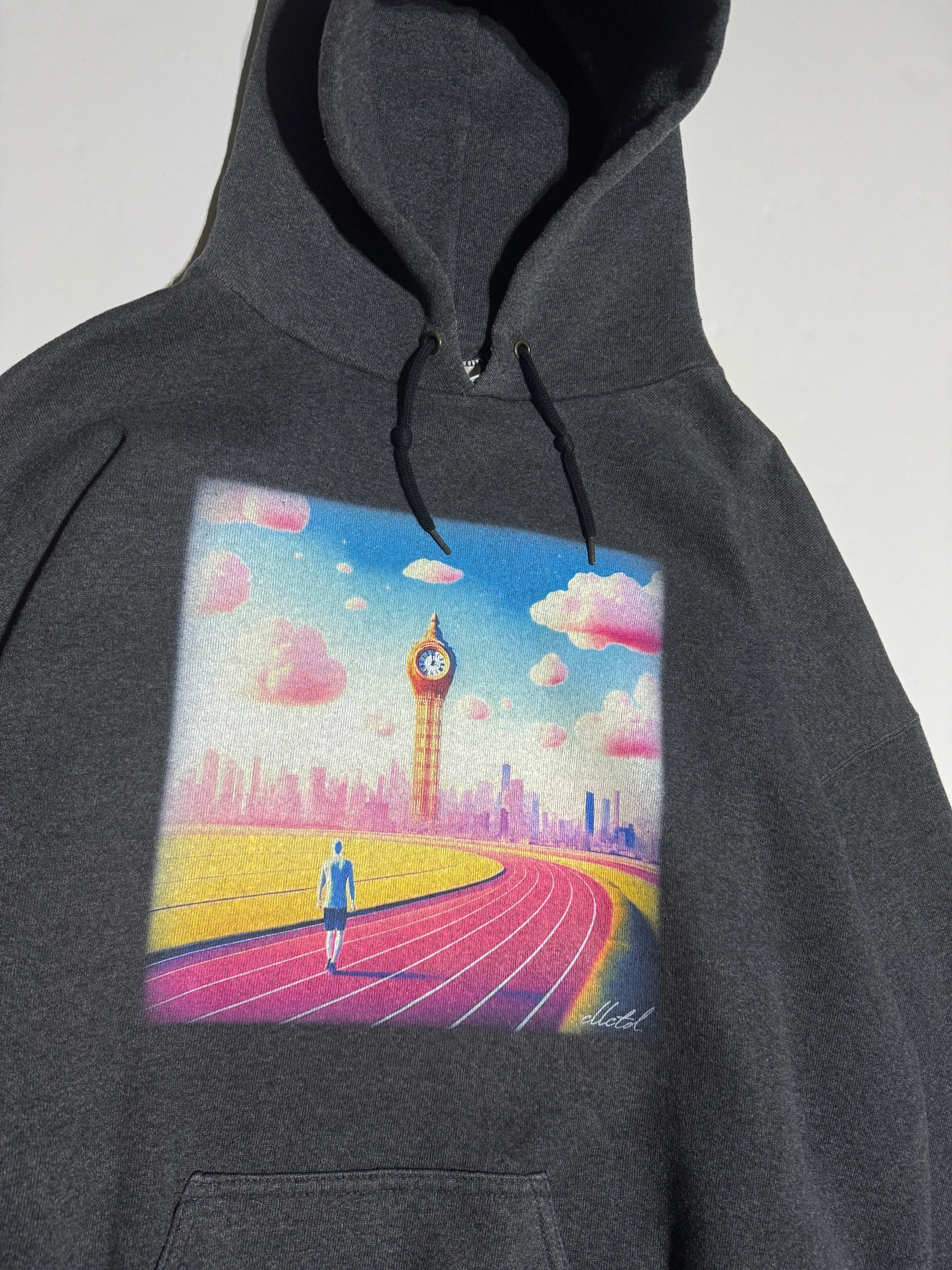 Original ‘Time Waits For No One’ artwork Direct To Garment Printed on the center-front of the garment