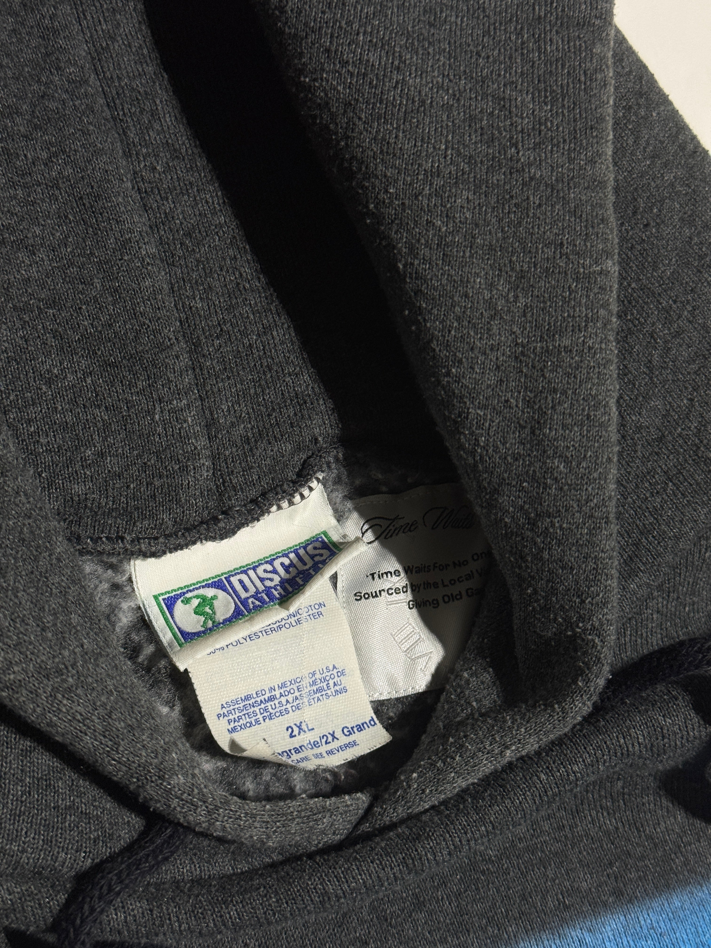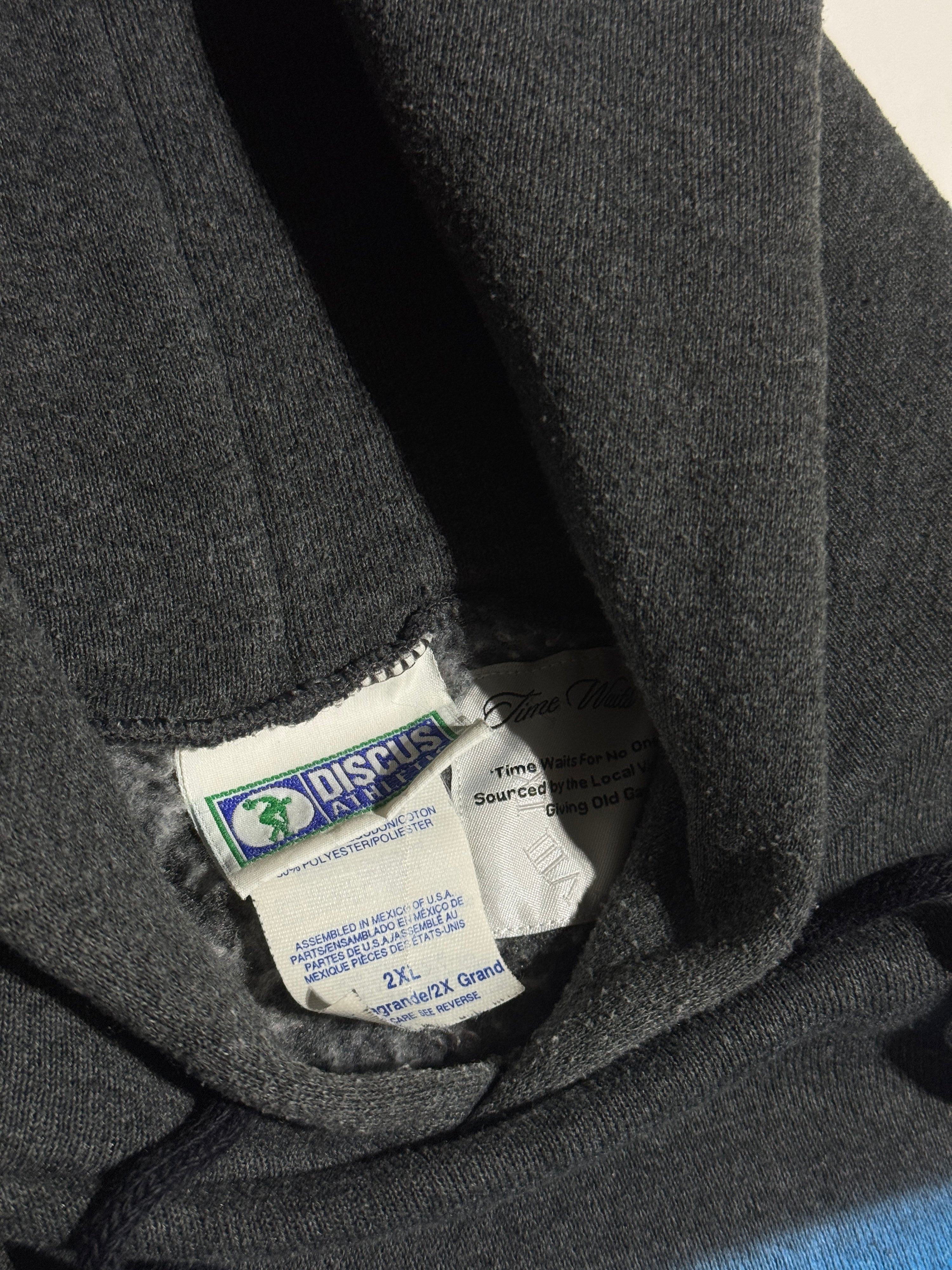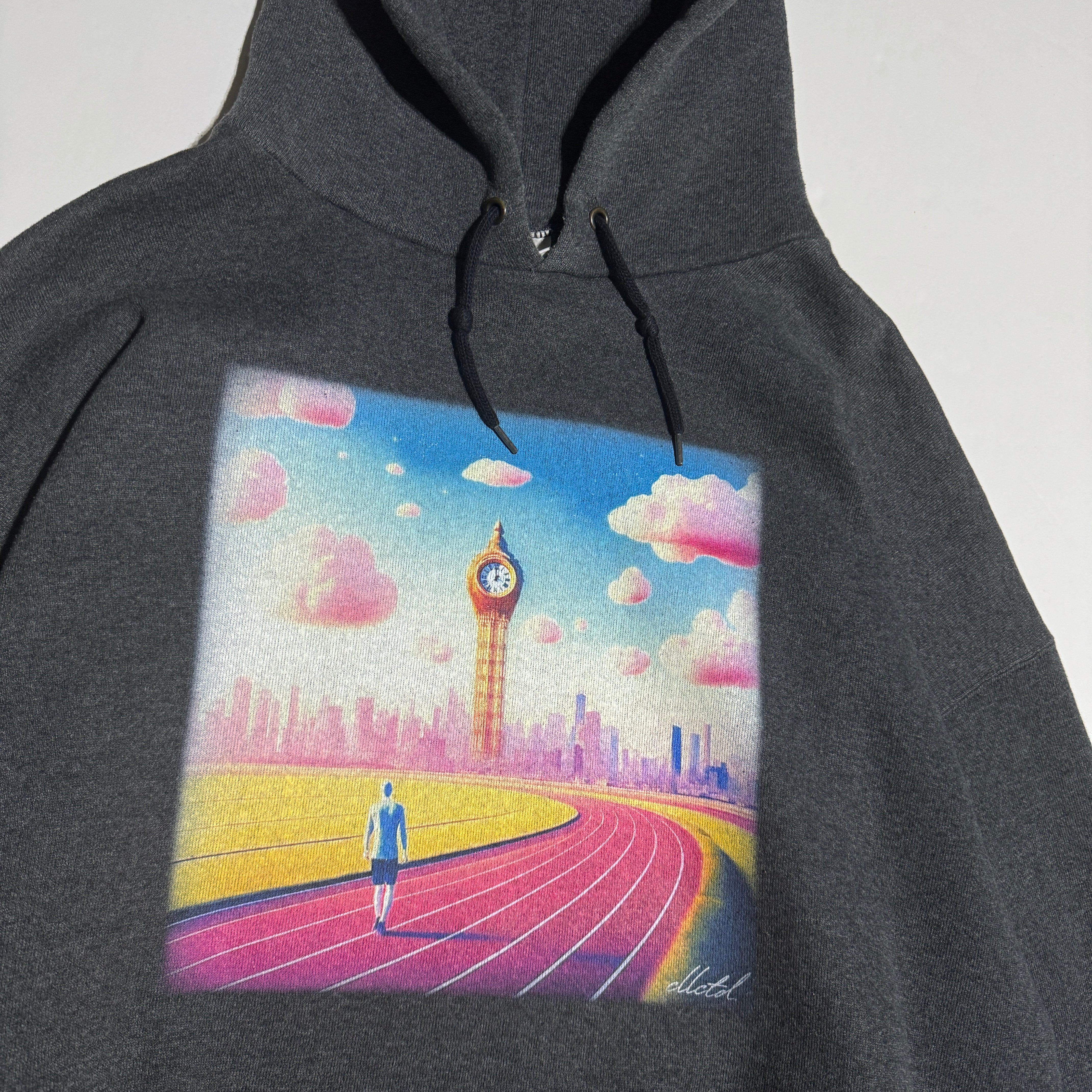 Original ‘Time Waits For No One’ artwork Direct To Garment Printed on the center-front of the garment