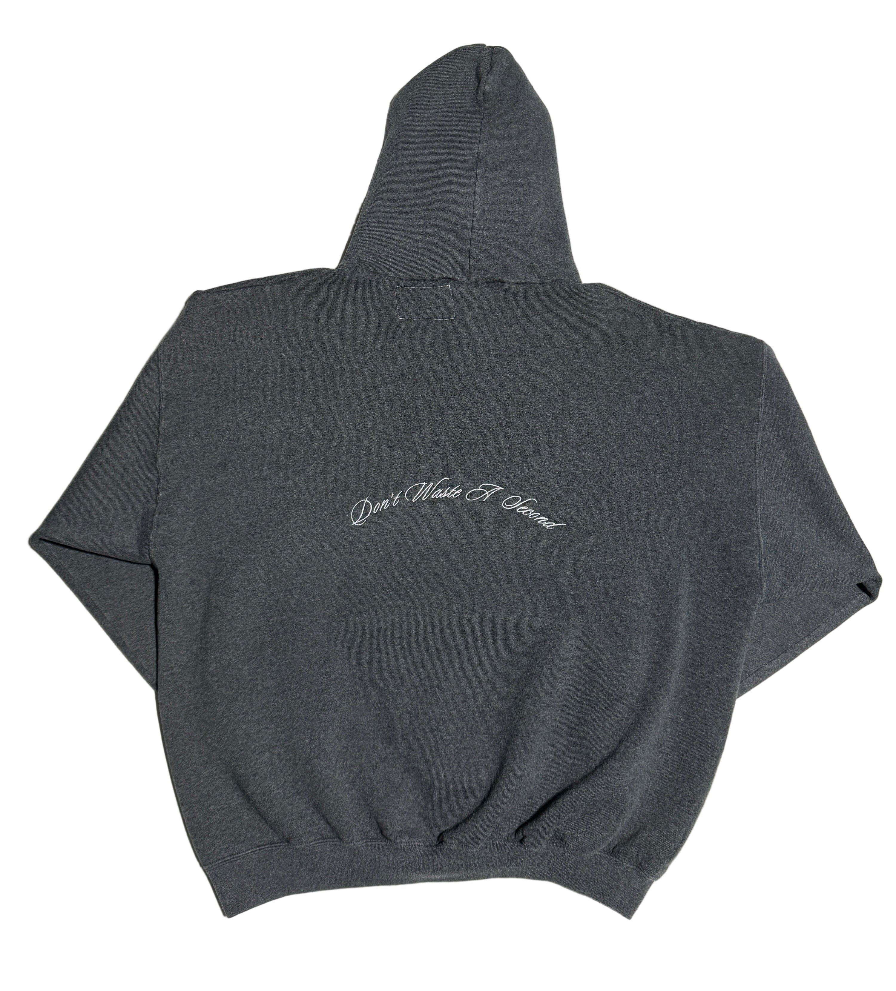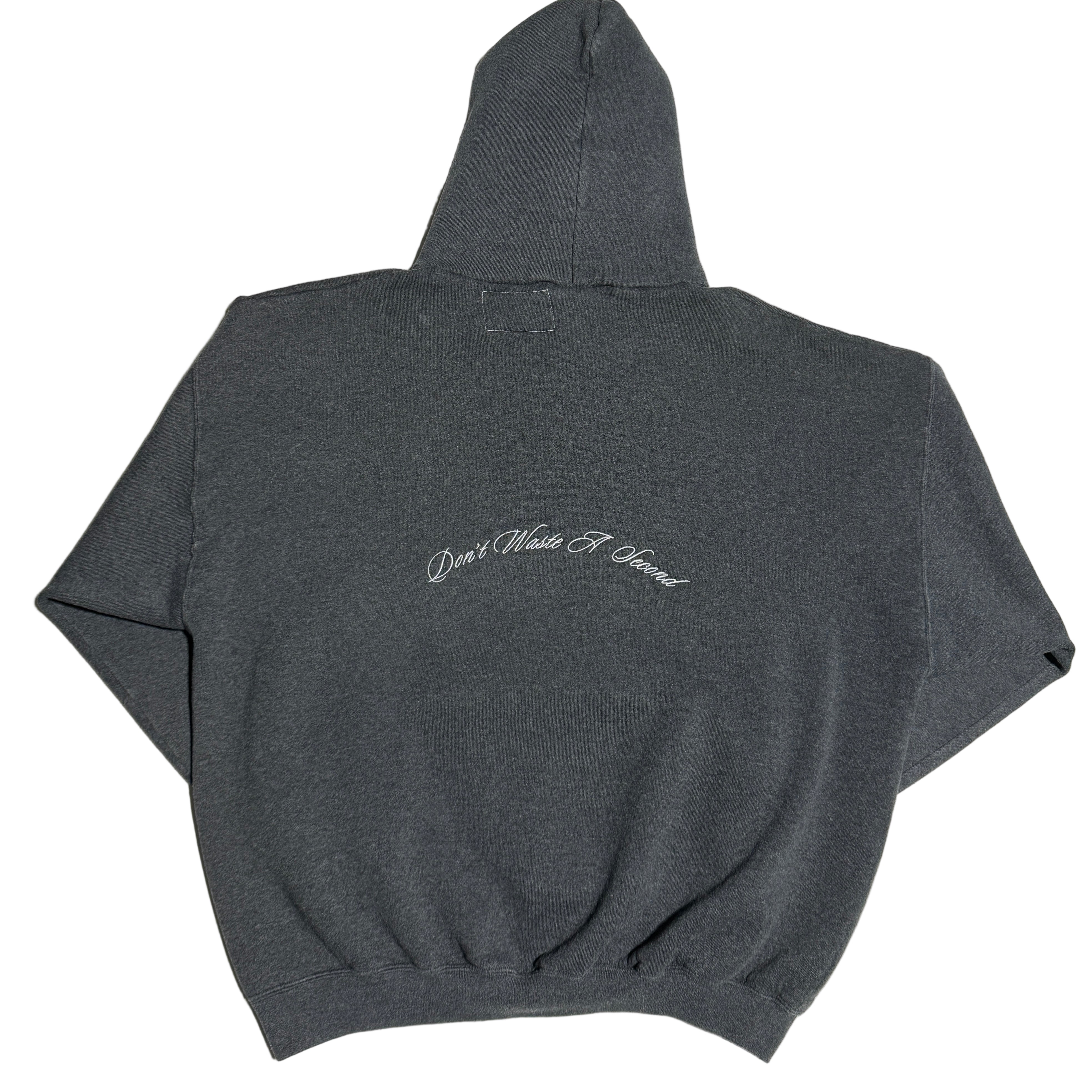 ‘Don’t Waste A Second’ embroidered to the mid-center back.